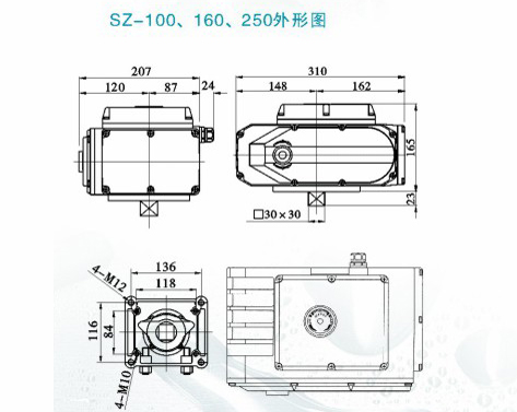 【SZ-100/160/250系列系列電動(dòng)執(zhí)行器外形尺寸圖】: